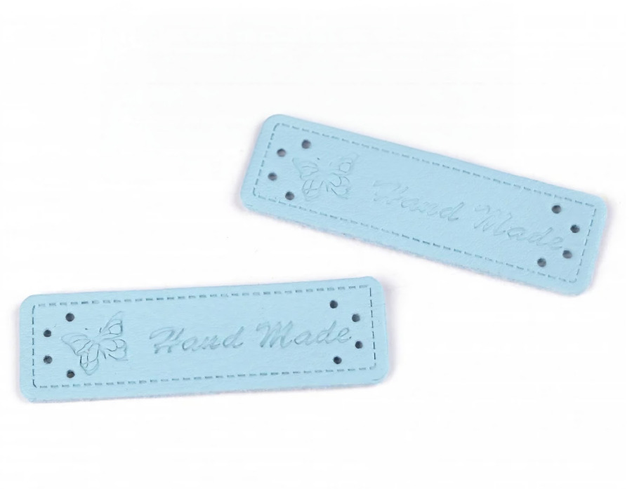 Etykietka,wszywka, metka z eko-skóry Hand made Motyl Blue